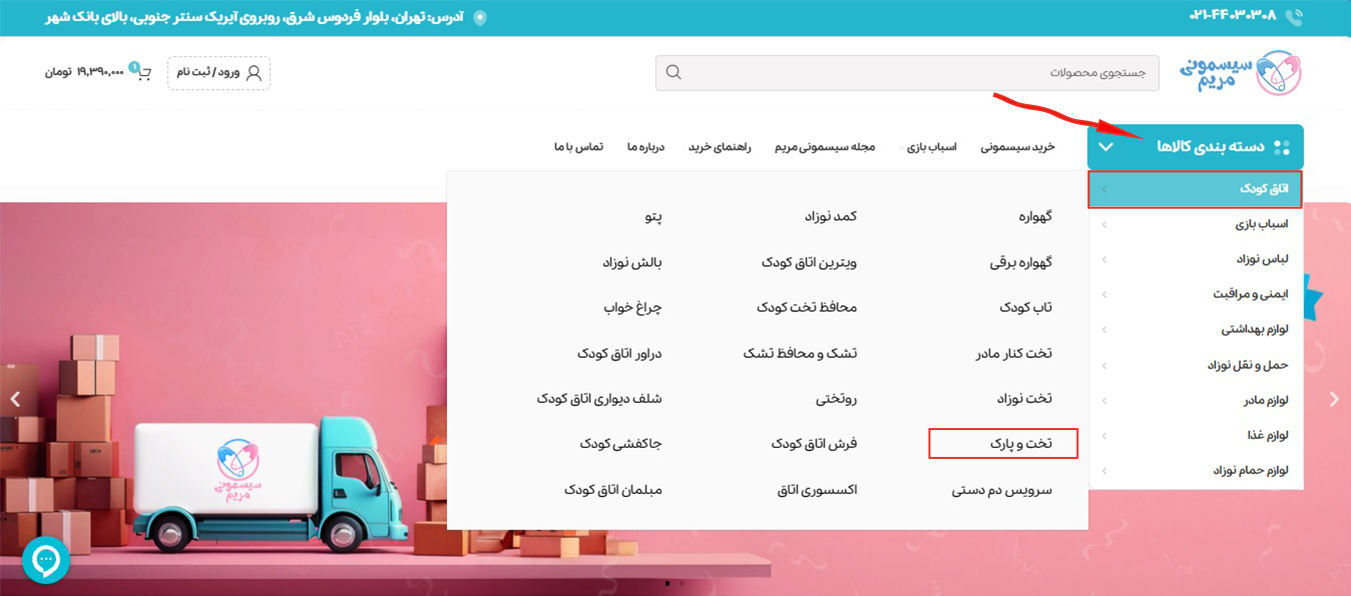 2. با استفاده از منوی دستهبندی، دسته مورد نظر خود را انتخاب نمایید.
