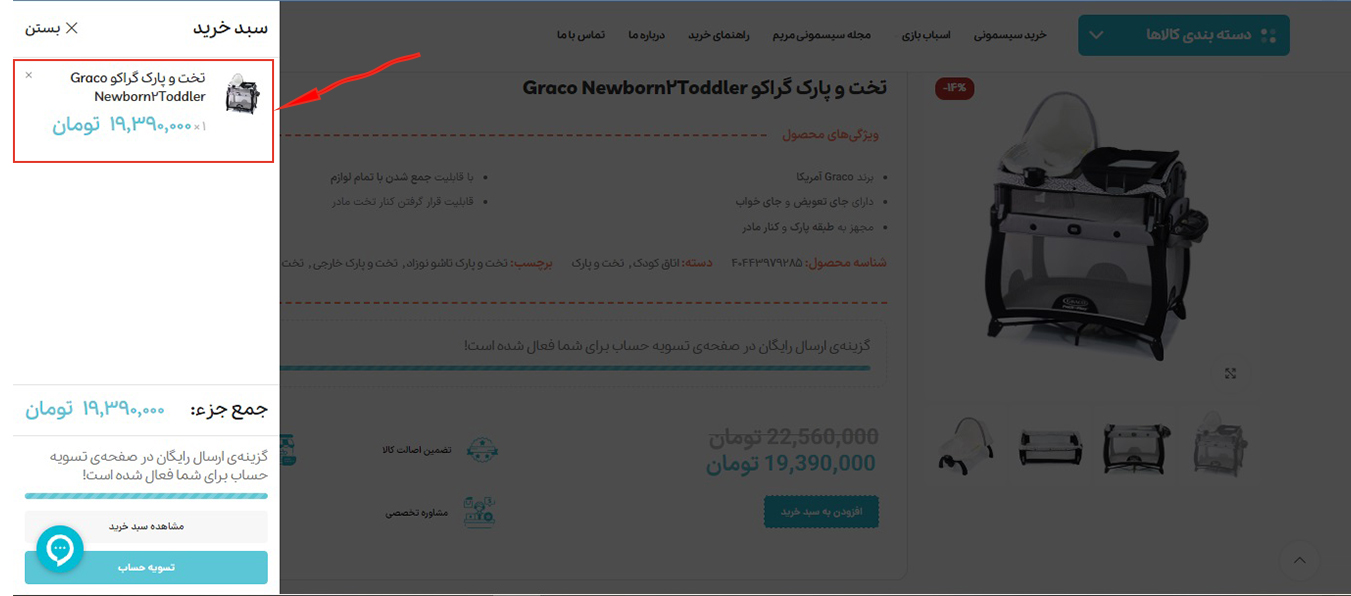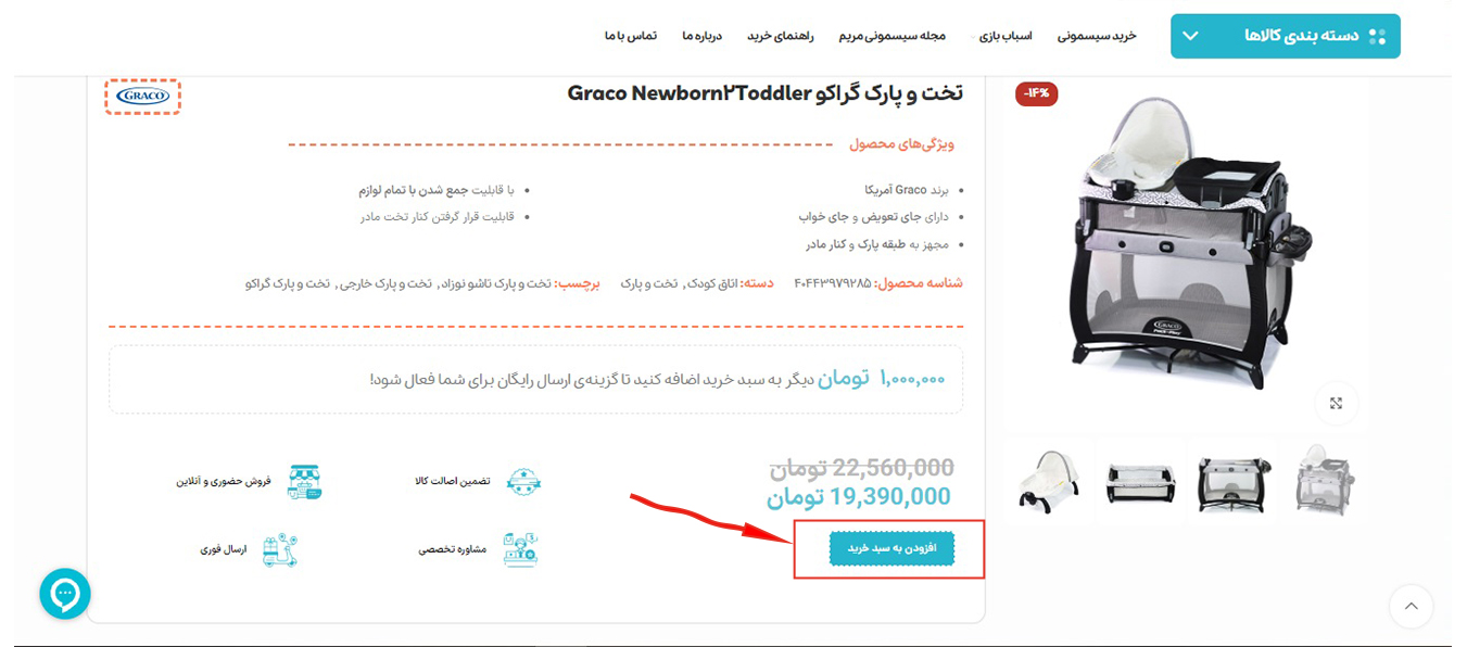 5. با انتخاب گزینه افزودن به سبد خرید، محصول را به سبد فروشگاهی خود اضافه نمایید.