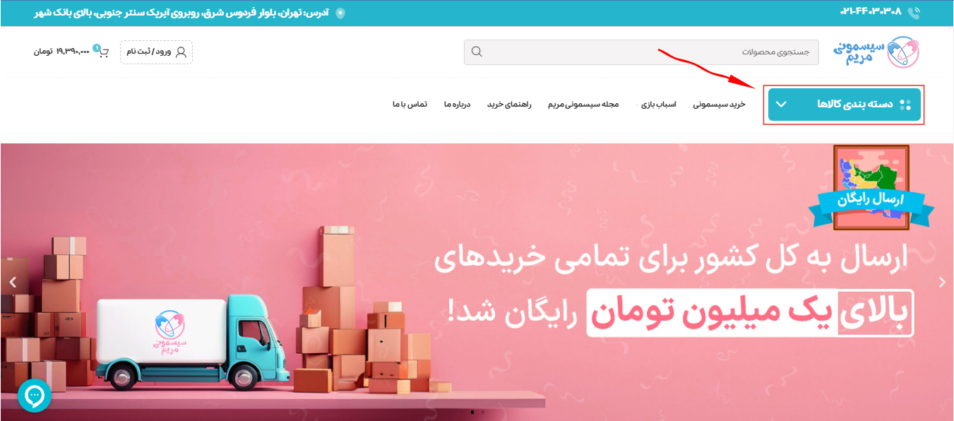 1. جهت سفارش محصول مورد نظر خود، روی گزینه دستهبندی کالاها کلیک کنید.