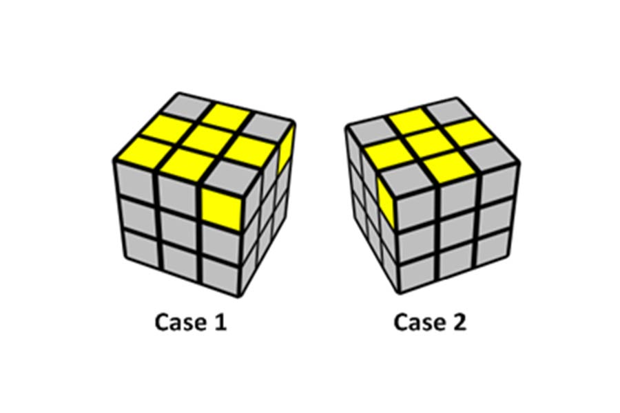 - حالت نقطه: فقط یک مرکز زرد دارید و هیچ قطعه لبه زرد دیگری در جای درستش نیست. در این حالت، الگوریتم اصلی را یک بار اجرا کنید.
