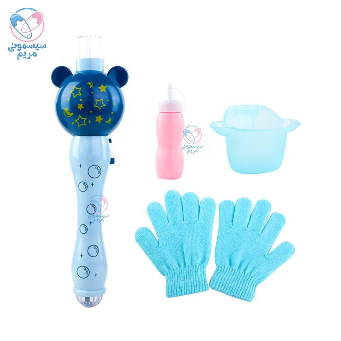 • همراه با اقلام باتری، مایع حباب‌ساز و یک جفت دستکش