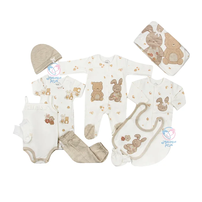 - شامل ۱۳ تکه ضروری، از جمله بادی آستین کوتاه، سرهمی، شلوار، مانتو، کلاه، جوراب، دستکش، رکابی، پتو، آروغگیر، پیشبند؛