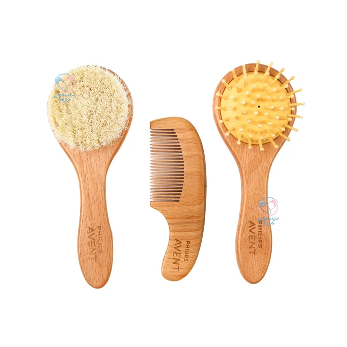 شانه و برس سهتکه سر گرد فیلیپس اونت Philips Avent مجموعهای کاربردی و با طراحی کاملاً طبیعی و کودکپسند است که برای مراقبت روزانه از موهای لطیف و پوست سر حساس نوزادان طراحی شده است. این ست شامل یک شانه چوبی، یک برس نرم با الیاف طبیعی و یک شانه با طراحی متفاوت است که با توجه به نیازهای روزمره والدین و ویژگیهای پوست سر نوزاد تهیه شده است. طراحی ارگونومیک، کیفیت بینظیر و استفاده از مواد کاملاً بیخطر، این محصول را به یکی از بهترین گزینهها برای تکمیل سبد بهداشتی سیسمونی نوزاد تبدیل کرده است. در ادامه بیشتر با ویژگیهای این محصول آشنا خواهیم شد.