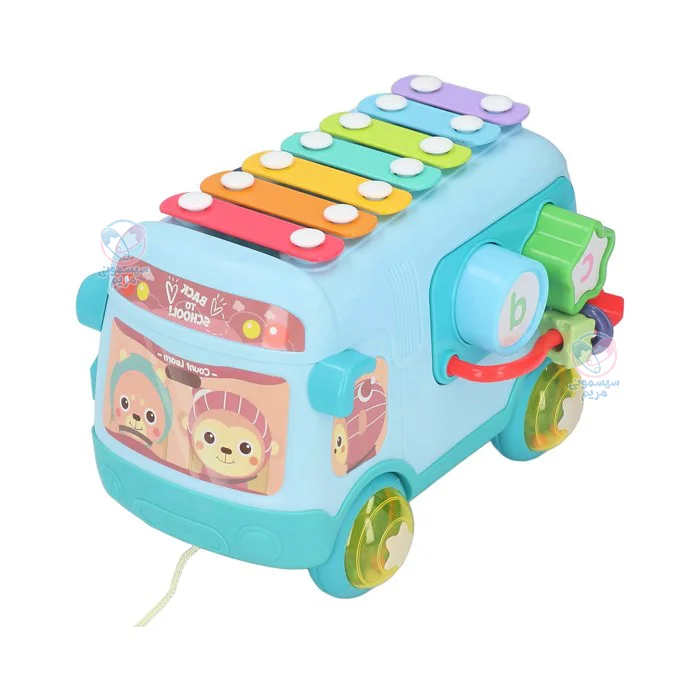 - دارای نخ کشی: یک نخ 15 سانتیمتری به جلوی اتوبوس متصل است تا کودک بتواند آن را بکشد و همراه خود حرکت دهد.