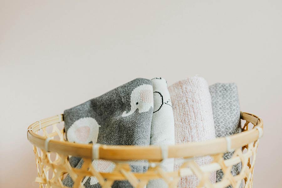 - لباسها و پوشاک: از سرهمیها و بادیها گرفته تا جورابها، کلاه و…، همه میتوانند در سبدهای جداگانه دستهبندی شوند تا هنگام نیاز به سرعت پیدا شوند. همچنین باتوجه به اینکه لازم است در طول روز لباسهای نوزاد را مدام تعویض کنید، میتوانید یک سبد را، به قرار دادن لباسهای دم دستی نوزاد اختصاص دهید.